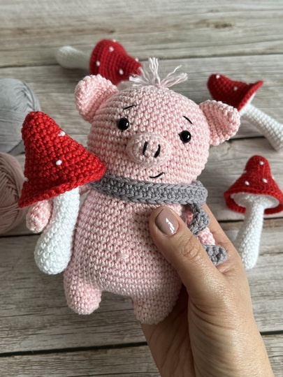 Dies ist eine digitale, deutschsprachige Häkelanleitung für das Glücksschweinchen und den Fliegenpilz. Die Anleitung enthält viele Detailfotos und eine ausführliche Beschreibung der einzelnen Arbeitsschritte. Die Figur kann daher auch von Anfängerinnen und Anfängern nachgearbeitet werden. Häkelgrundkenntnisse sollten jedoch vorhanden sein.