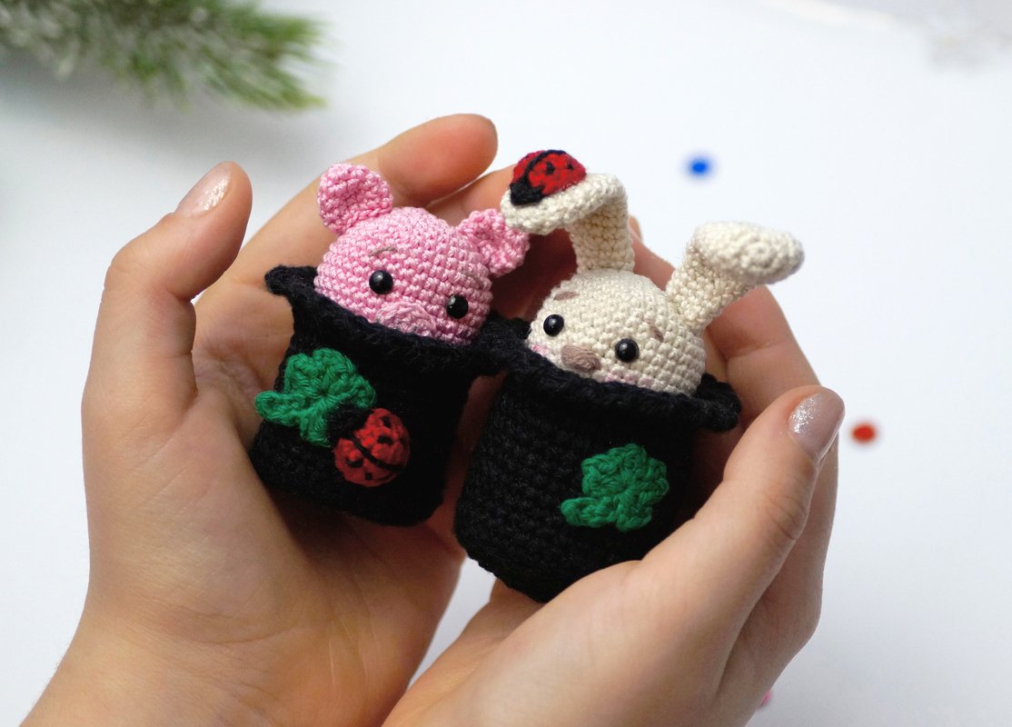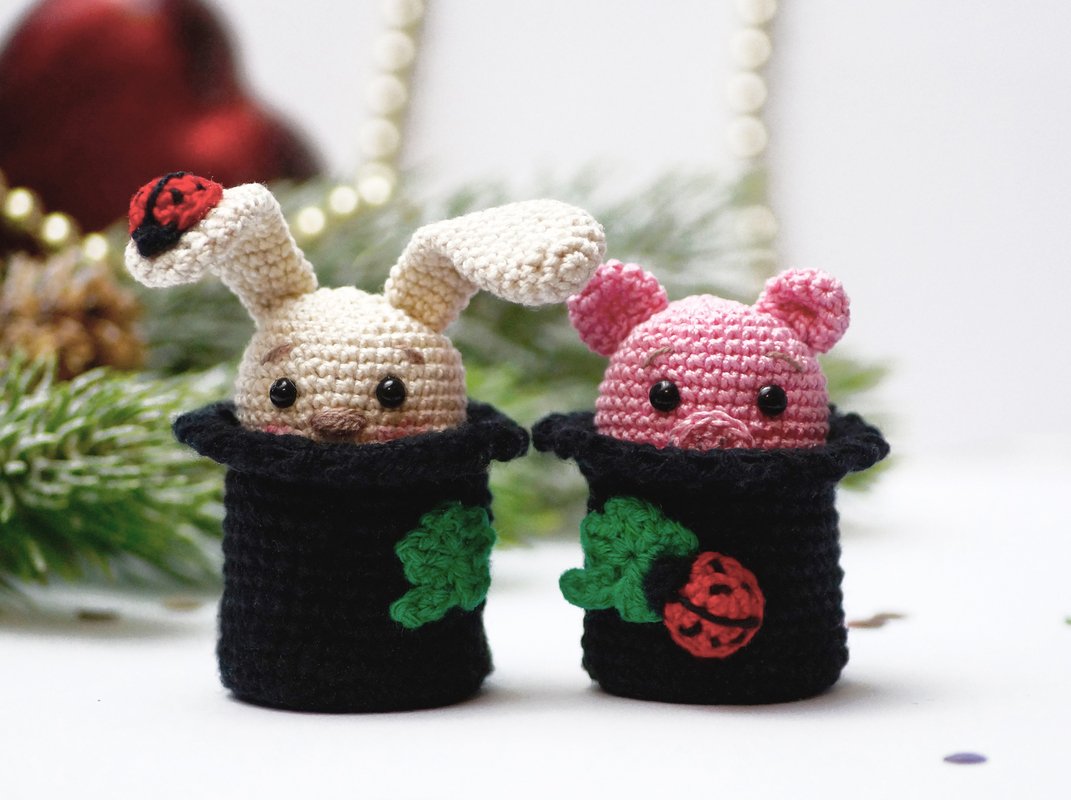 Mit dieser Anleitung kann man schnell zwei Glücksbringer häkeln. Einer ist Glücksschweinchen und der andere ist der Hase. Nach dem chinesischen Horoskop ist das Jahr 2023 ein Hasenjahr. Das Horoskop verspricht uns für 2023 Stabilität im Gesundheitsbereich.