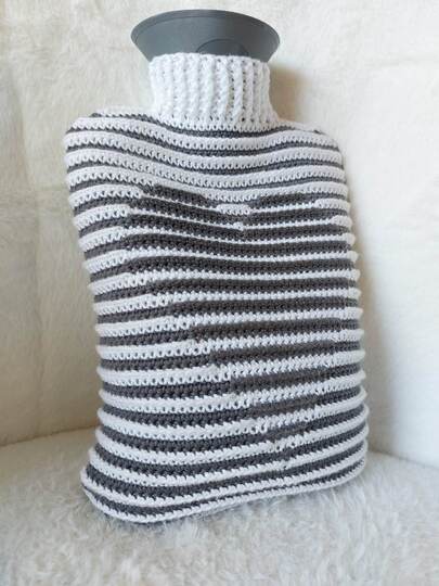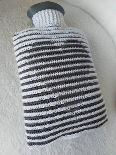 Der Wärmflaschenpulli kann auf normal grosse Wärmflaschen problemlos angepasst werden.