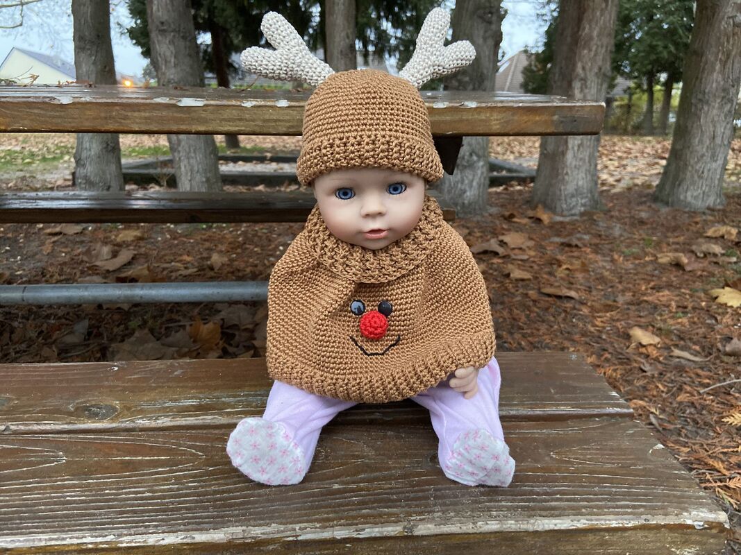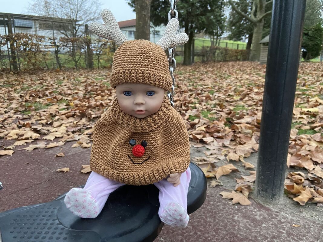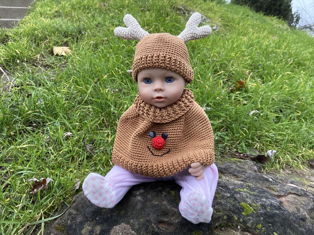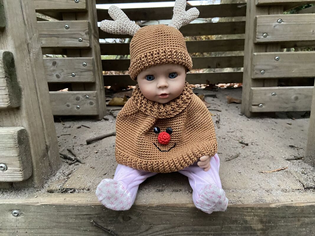 Mit dem niedlichen Puppenset Melly ist das Puppenkind bestens für kalte Tage gerüstet: Ein kuscheliger Poncho mit passender Mütze im charmanten Elch-Look sorgt nicht nur für warme Schultern, sondern bringt auch das Herz jeder Puppenmama zum Leuchten.