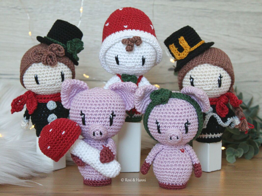 Häkelanleitung "Set Glücksbringer - Glücksschwein Amanda, Schornsteinfeger Bea & Ben & Fliegenpilz Felix“