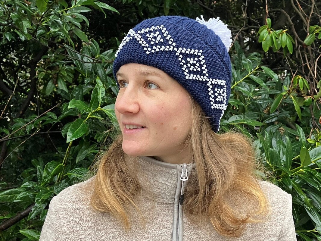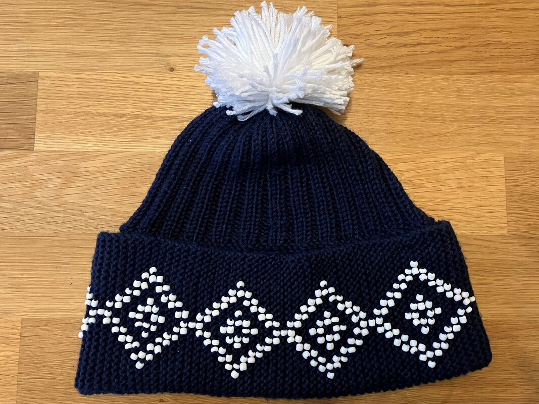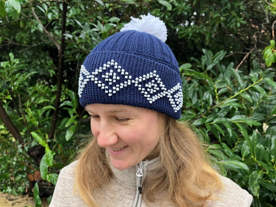 Eine ausführliche Strickanleitung im PDF-Format zum Runterladen. Alles wird erklärt: Wie man die Perlen auffädelt und einstrickt, wie viele Maschen man anschlagen muss etc… Auch wie man den Pompon selbst herstellt, wird erklärt