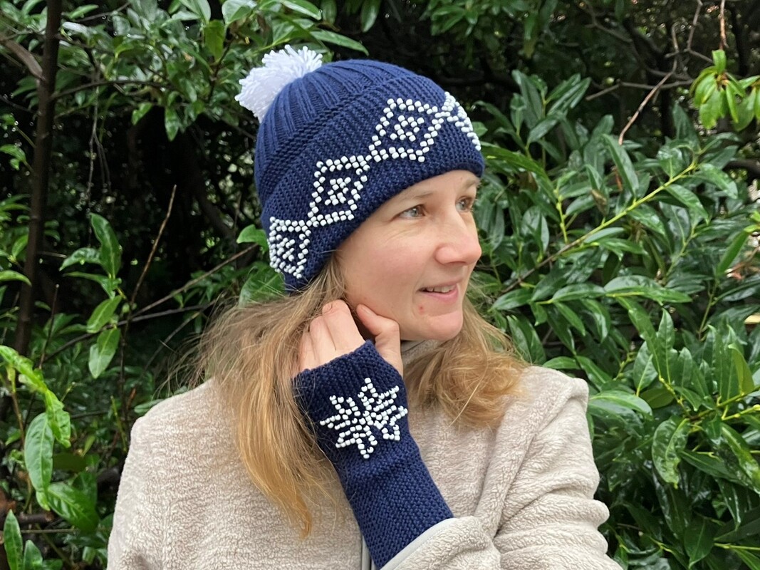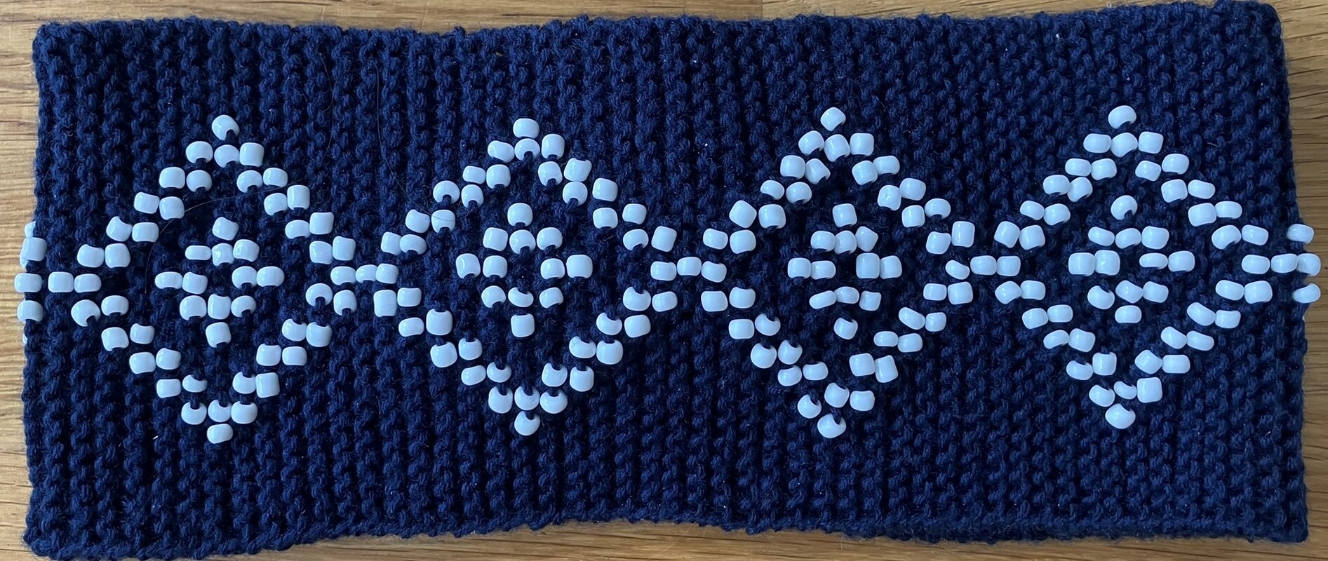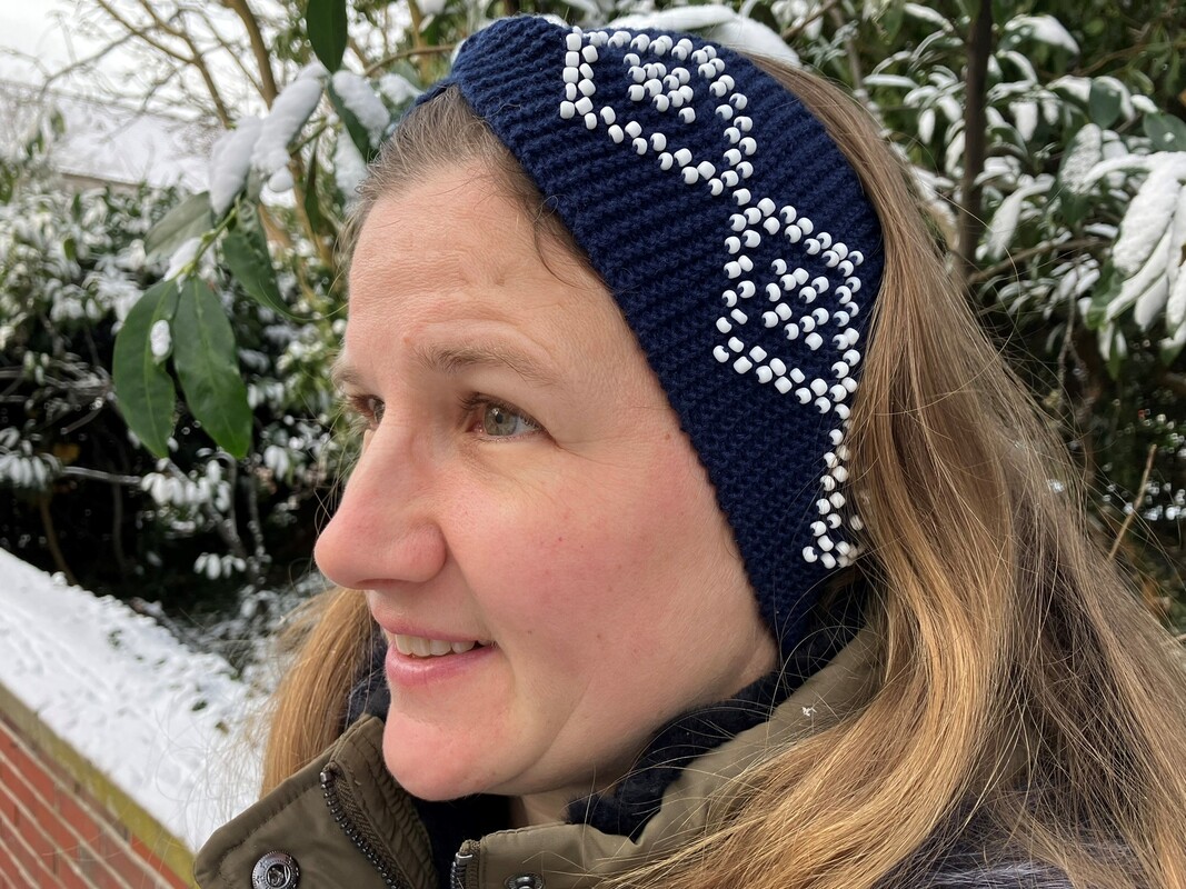 Diese Mütze ist ein Schmuckstück auf dem Kopf. Sieht auch als Stirnband schön aus. Das Stirnband wird quer gestrickt und darauf aufbauend dann die Mütze. Die Perlen sind nicht aufgestickt, sondern eingestrickt, was einfacher ist, als man denkt. Alles wird ausführlich in dem PDF erklärt. (die Pulswärmer auf dem 2. Foto sind nicht Bestandteil dieser Anleitung. Dafür habe ich eine extra Anleitung gemacht.)