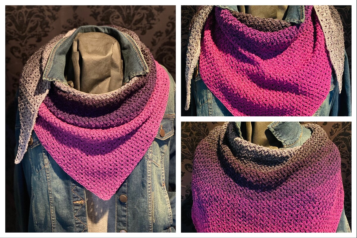 Das abgebildete Tuch wurde von mir mit einer 3,5er Nadel und einem 4-fädigen Bobbel mit 800 m Lauflänge (200gr) gestrickt. Es ist 2,00 m breit und an der Spitze 0,60 m tief.