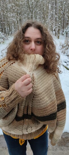 Der Schwesterzopf ist ein kuscheliger Pulli, der durch sein durchgängiges Zopfmuster sehr verspielt, absolut nicht altbacken und wahnsinnig flott wirkt und einfach Spaß macht zu häkeln.