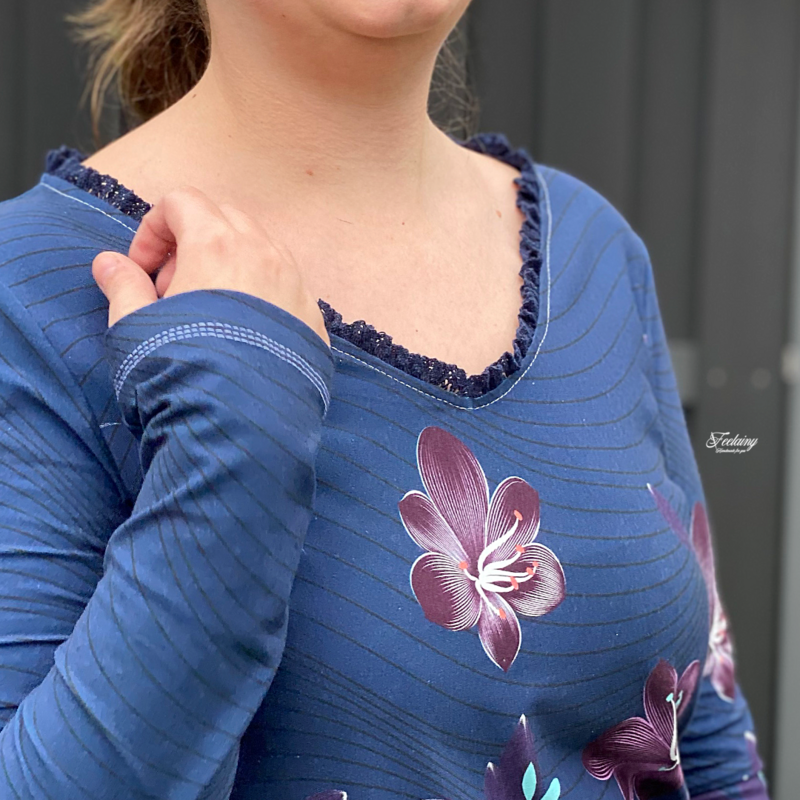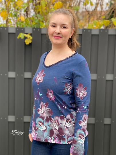 Das Shirt ist schnell genäht und überzeugt durch den lässigen Look. Naht und Saumzugabe sind im Schnitt schon enthalten.