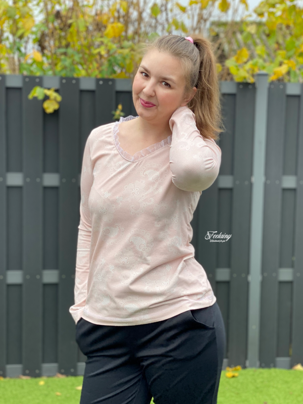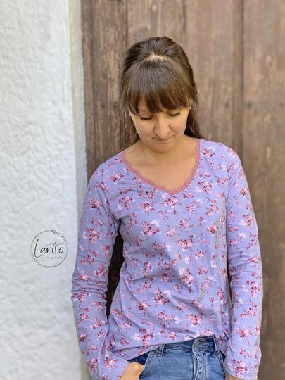 Das "Langarmshirt" ist ein Shirt mit V-Ausschnitt und Spitze