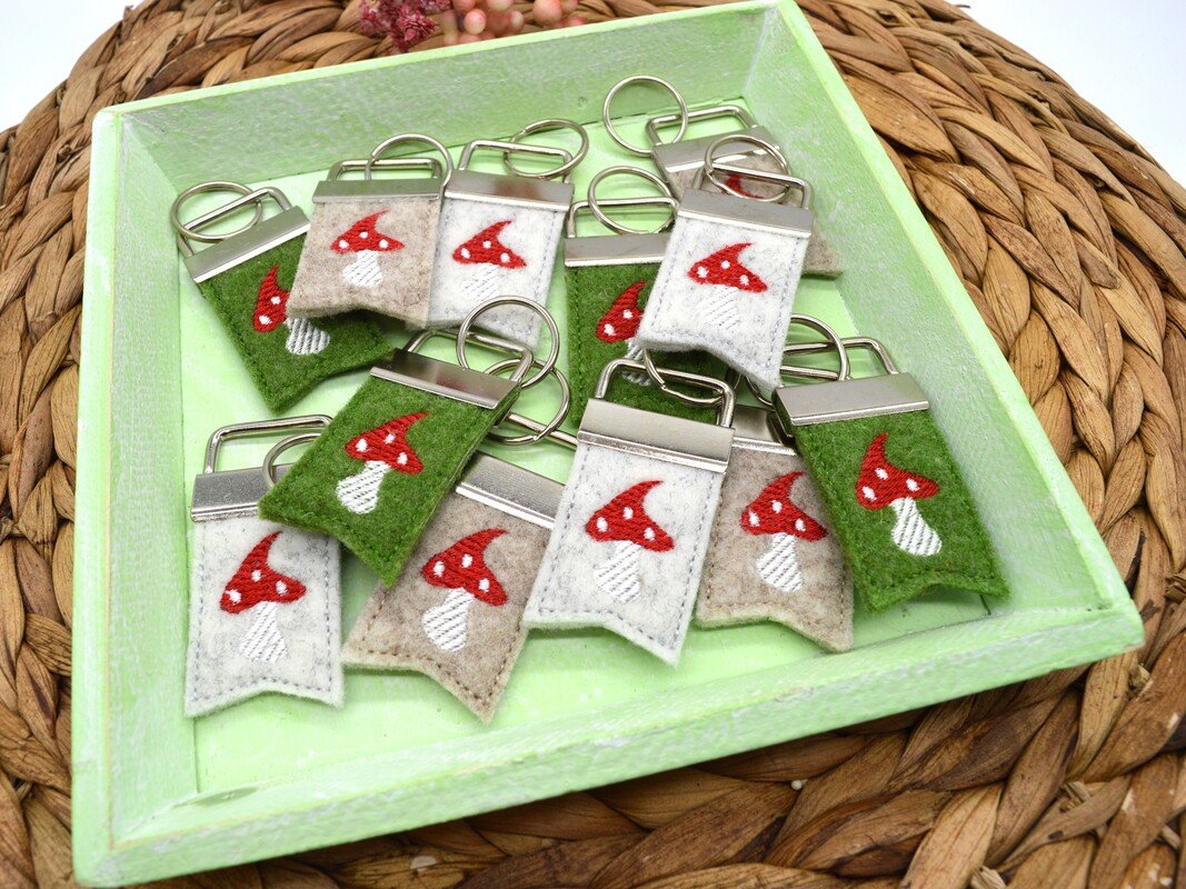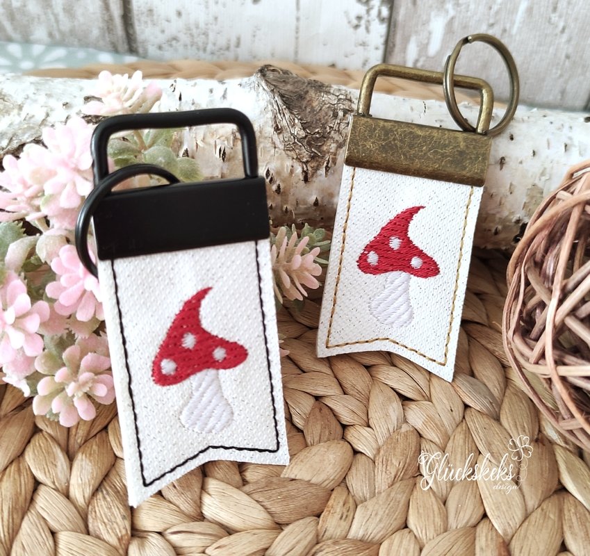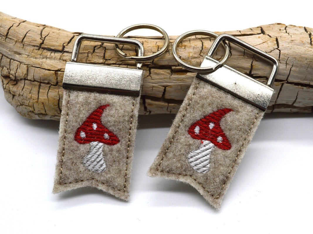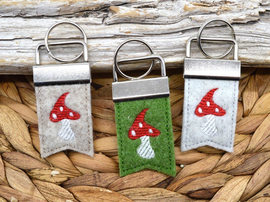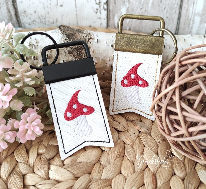 Fliegenpilz als ITH Stickdatei für einen Schlüsselanhänger.