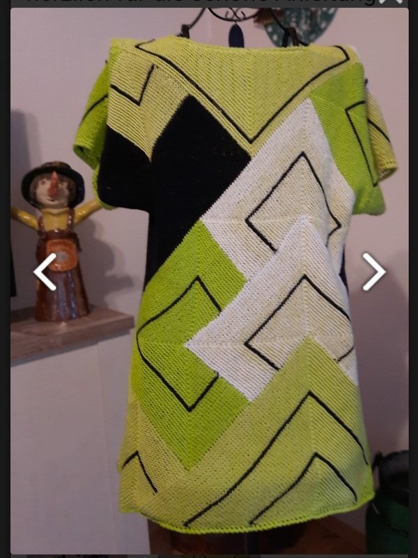 36/38, 40/42, 44/46, 48/50 und kann problemlos auch vergrößert werden. Ich habe Größe 40/42 gestrickt, bin 168cm groß und die Tunika geht mir bis zur Hüfte. Mit jeder Größe größe wird sie automatisch auch etwas länger.