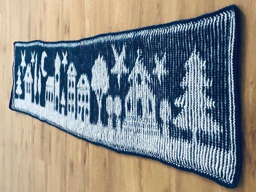 Der Mustersatz des Winterschals besteht aus 62 Maschen und 323 Hin- und Rückreihen.