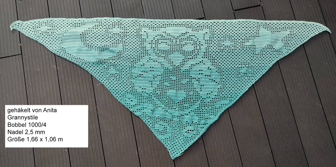 welchen Stil ihr euch entscheidet. Ein Tuch im Filetstil wird aber IMMER mehr an Garn verbrauchen als selbiges im Grannystyle!