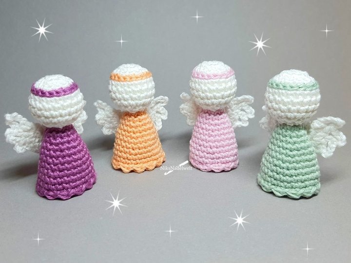 PDF Datei 7 Seiten, ausführlich erklärt und gut bebildert. Häkelgrundkenntnisse sollten vorhanden sein. Es wird mit Fadenring, Luftmaschen, Kettmaschen, festen Maschen, Zunahmen und Abnahmen gearbeitet. Das Häkeln kleinerer Teile mit wenigen Maschen, sowie das Vernähen ist etwas "fummelig", aber auch ambitionierte Anfänger können es schaffen, denn viele Detailfotos zeigen Schritt für Schritt wie der Mini Engel fertig wird.