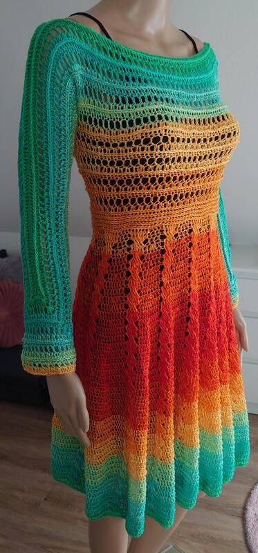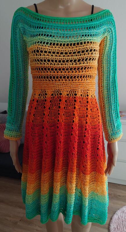 Das Kleid Malia ist, aufgrund seiner Arbeitsweise, bestens für Farbverlaufsgarn geeignet.