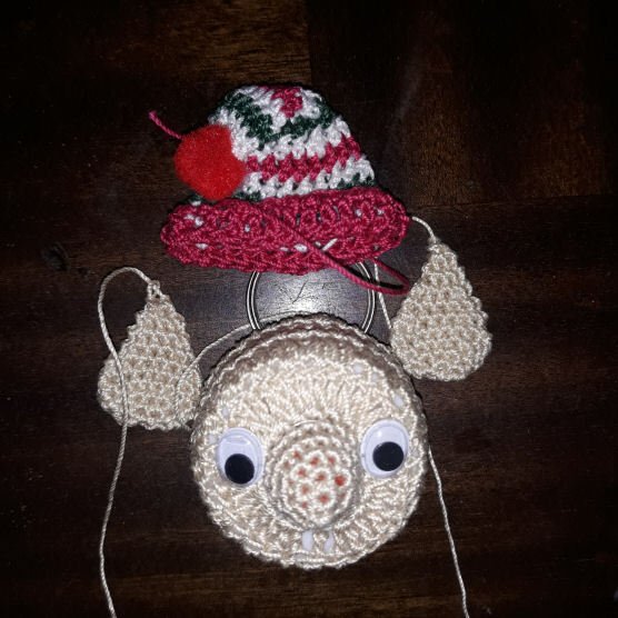 Verschiedenfarbig gestaltete Mützen, das Annähen der Ohren und Mützen