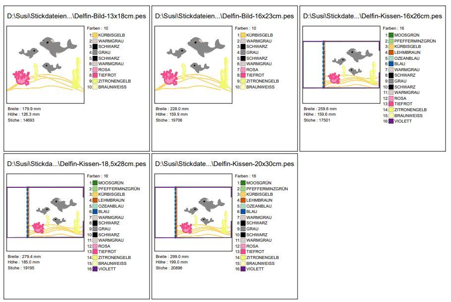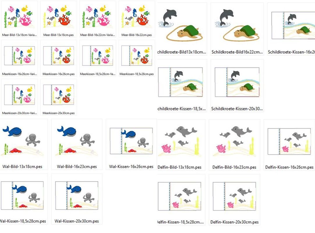 Ihr bekommt jedes Motiv als Datein für ein Kissen ITH in 20x30cm, 18,5x28cm und 16x26cm