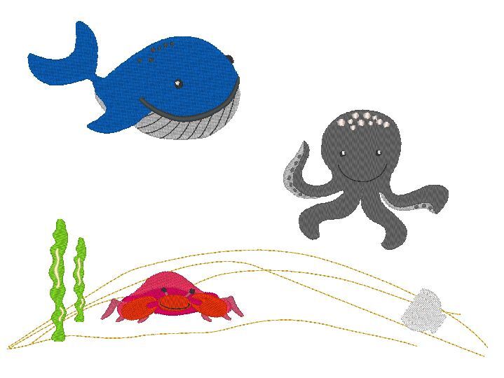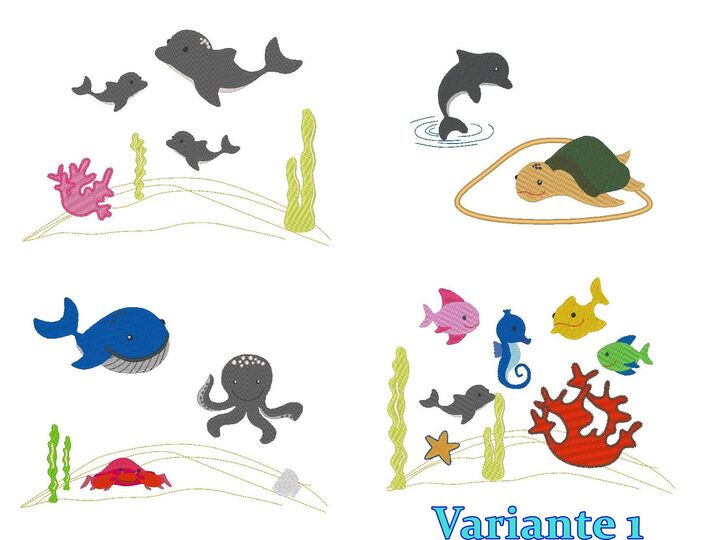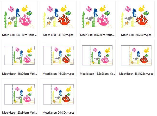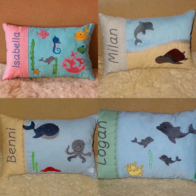 ♥ Stickdatei für vier verschiedene Kissen ITH mit Meeresmotiven im SET ♥