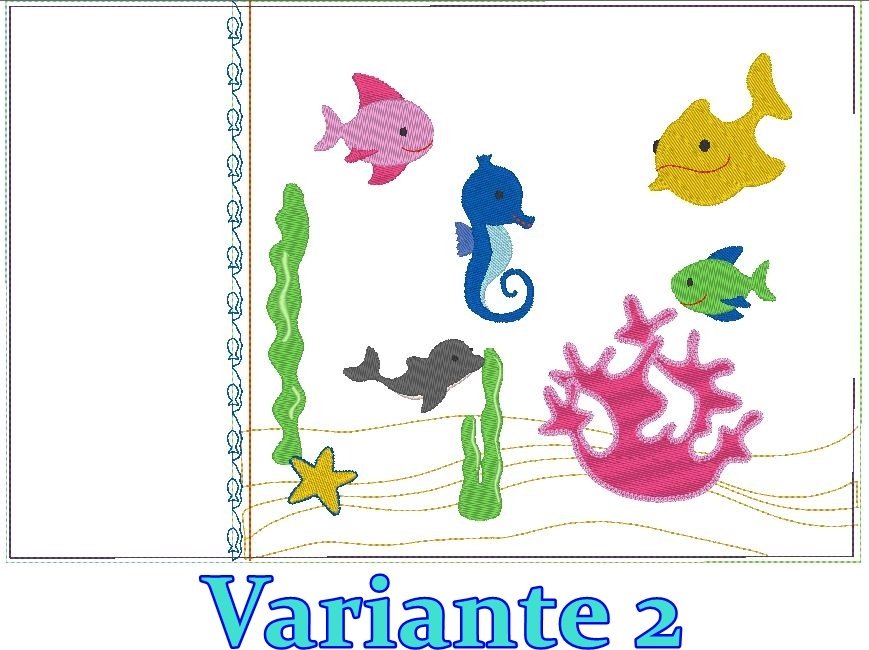Variante 1 : hier werden alle Fische nacheinander gestickt, so seid ihr flexibel in der Farbwahl.