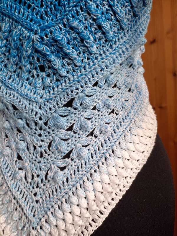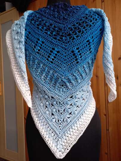 In dieser Anleitung zeige ich Dir, wie Du es leicht nachhäkeln kannst. Das Muster ist etwas verzwickt, aber nicht nur Könner, sondern auch fortgeschrittene Neueinsteiger können es schaffen. Die Form des Tuches „nieve“, ist im Gegensatz zur klassischen Form, länger und ein nicht so tief gearbeitetes Dreieckstuch.