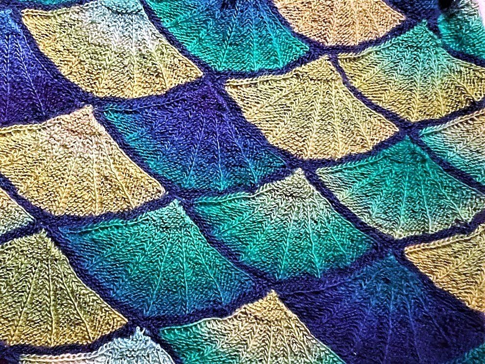 Wollmenge ist abhängig von gewünschter Größe und Länge. Für Kleidergröße 46 in knielang wurden 250 g Farbverlaufsgarn und 100 g Kontrastfarbe verbraucht. Ich habe das Garn "Samba" von Garnmanufaktur verwendet. Wobei auch jedes andere Garn mit Farbverlauf, bei diesem Muschelmuster, wunderschöne Effekte erziehlt.