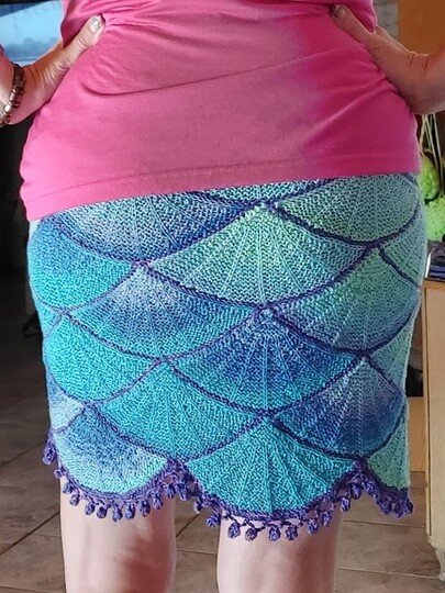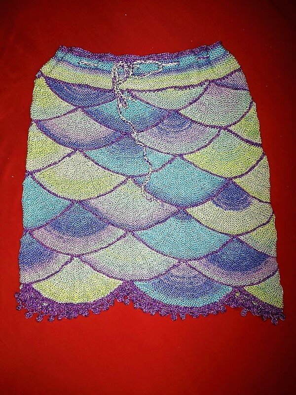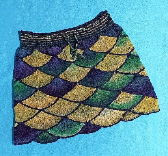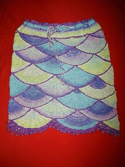 Außergewöhnlicher Patch-Art-Strickrock im Muscheldesign. Es gibt keine Naht, der ganze Rock ist in einem Stück gestrickt. Der Rock ist in Größe und Länge individuell anpassbar. Es ist also egal ob du in Größe S oder XXXL strickst, ob du Mini- Midi- oder Maxilänge bevorzugst. Du kannst individuell anpassen.
