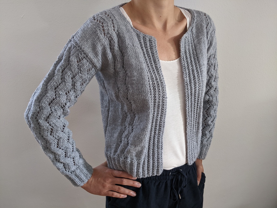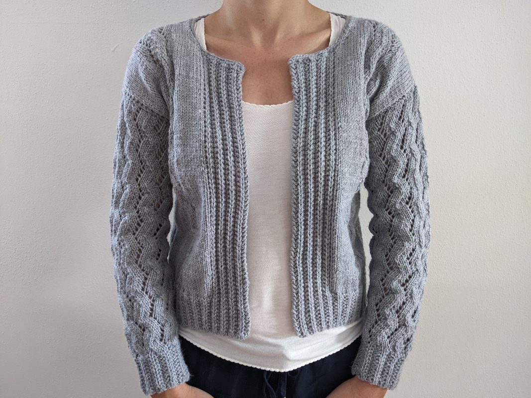 Warme Jacke mit aufregendem Wellenmuster auf Rücken und Vorderteilen. Die Ärmel werden komplett im Wellenmuster gestrickt und fallen dadurch besonders gut auf.