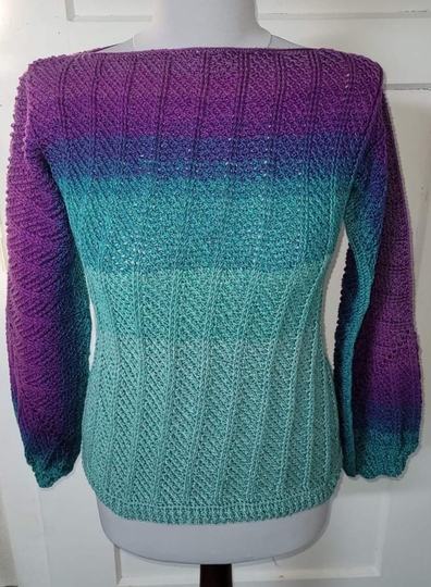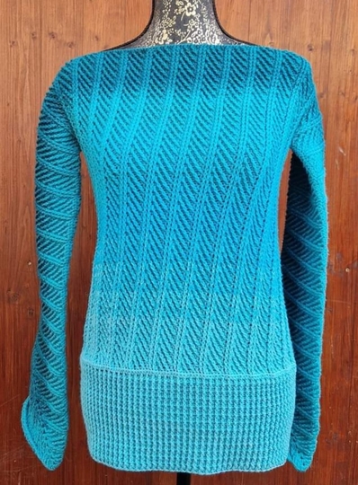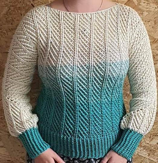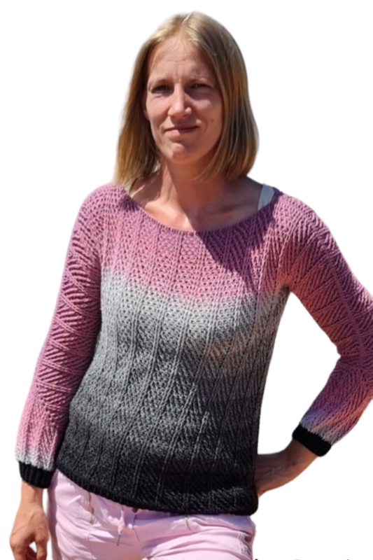 Der Pullover kann in jeder (Erwachsenen) Kleidergröße gehäkelt werden.