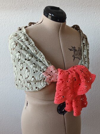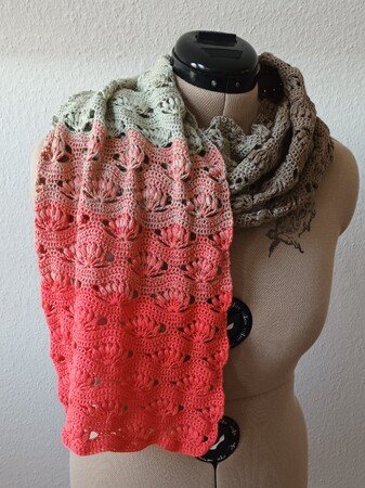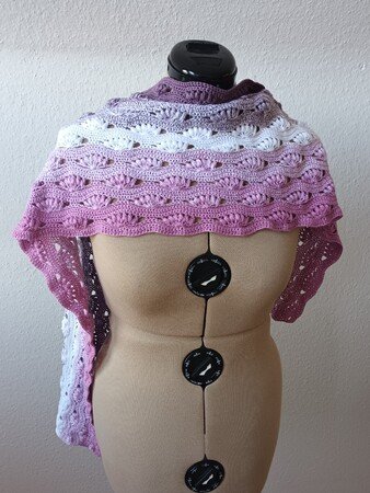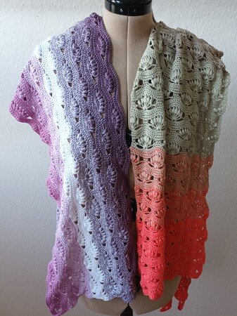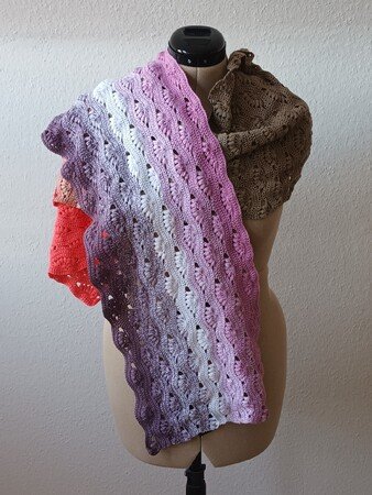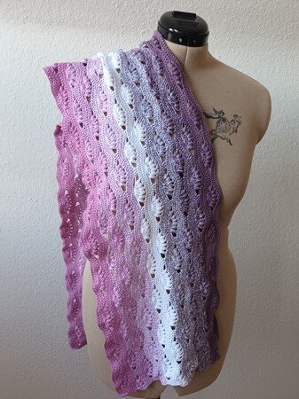 Nach dieser Anleitung kannst Du dir eine bezaubernde Stola oder einen Schal in zwei Varianten häkeln. Entweder lässt Du das Muster über die Länge oder über die Breite laufen. Die Größe kann beliebig, durch hinzufügen oder weglassen von Mustersätzen, verändert werden.