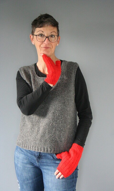 Das Pattern ist für das Arbeiten auf dem Nadelspiel geschrieben. Die Länge kannst du erweitern, indem du mehr Runden vor und/oder nach den Daumenzunahmen strickst.