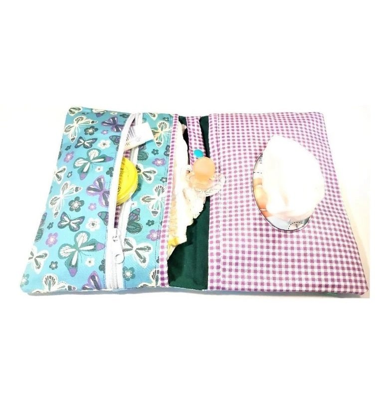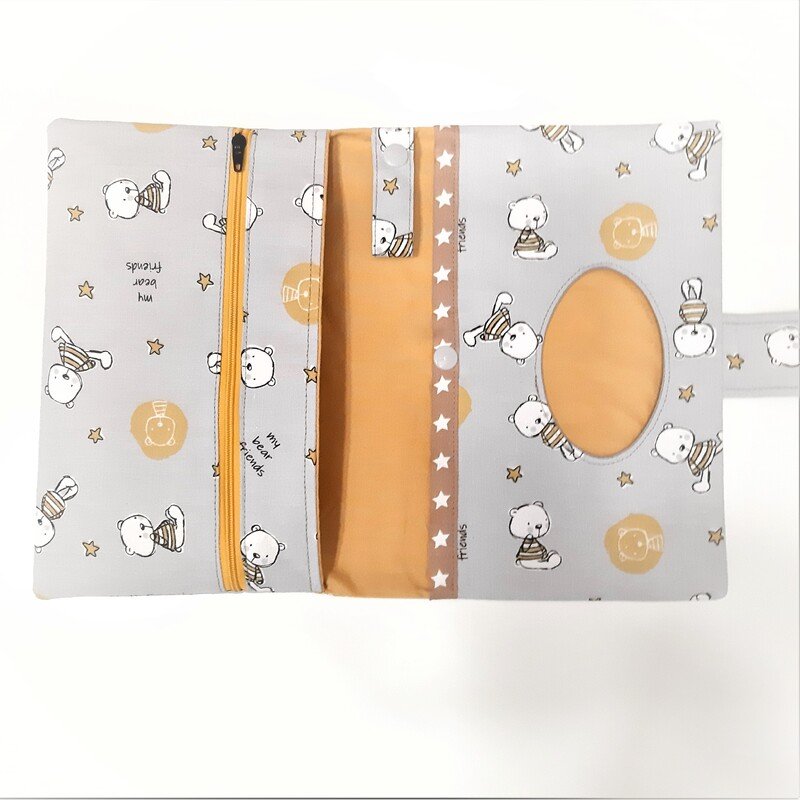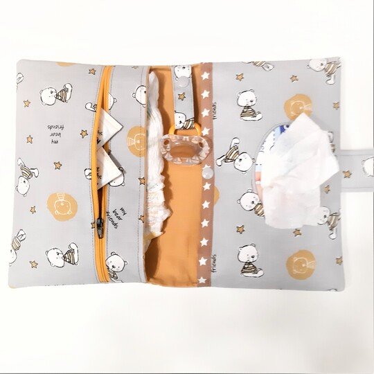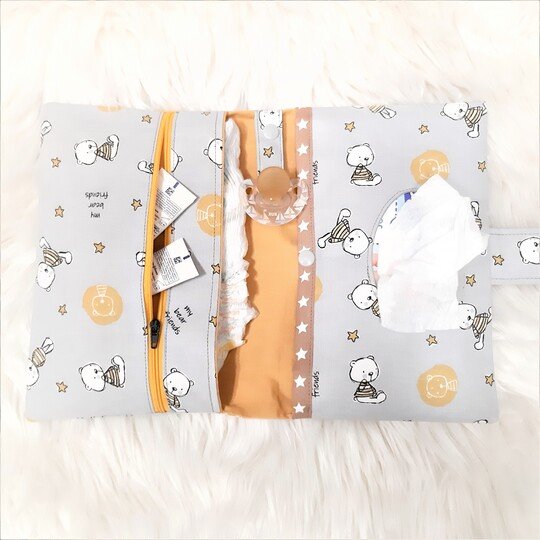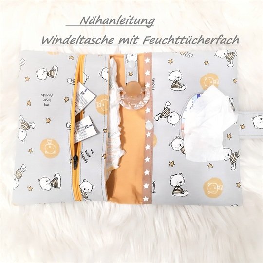 Diese praktische Windeltasche mit Feuchttücherfach, Schnullerband zur Aufbewahrung (optional) und Reißverschlussfach bietet viel Stauraum für deine Wickelutensilien. Unter dem Reißverschlussfach befindet sich noch ein zusätzliches Fach.