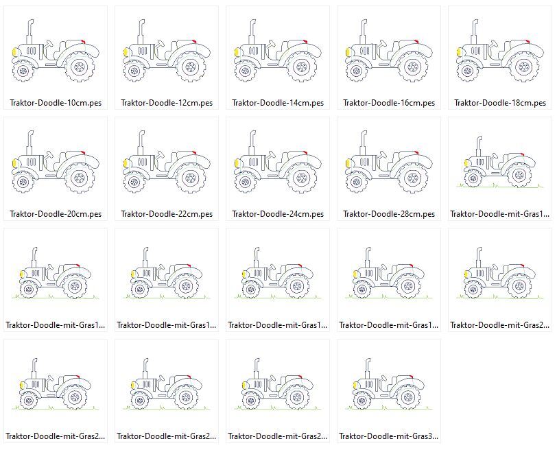 Stickdatei Doodle Traktor von 10 bis 30cm Größe