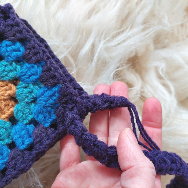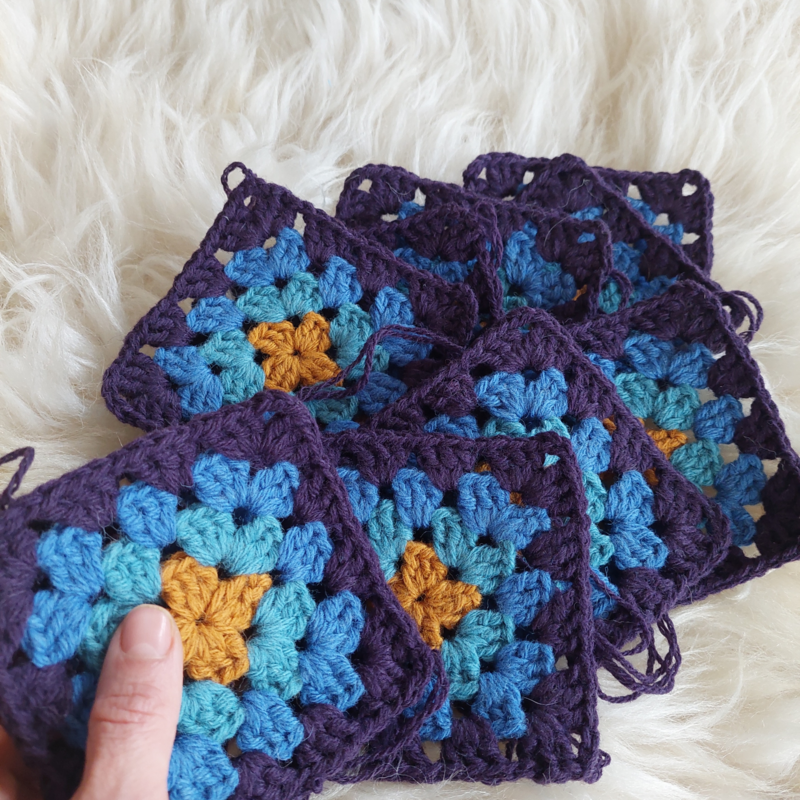 Granny Square ist eine besondere Häkeltechnik, wobei einzelne Quadrate miteinander verbunden werden.