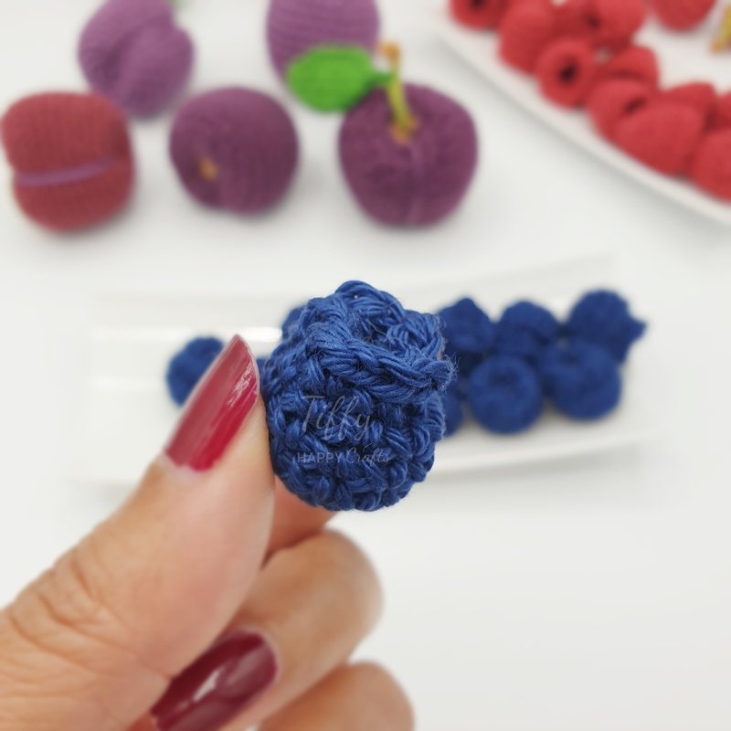 Hier ist ein leicht verständliche Häkelanleitung für die perfekte Heidelbeere, Blaubeere Sehr einfach und schnell zu häkeln.