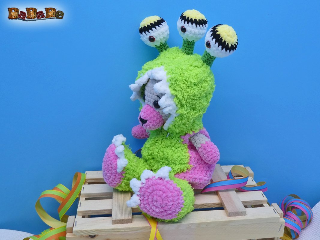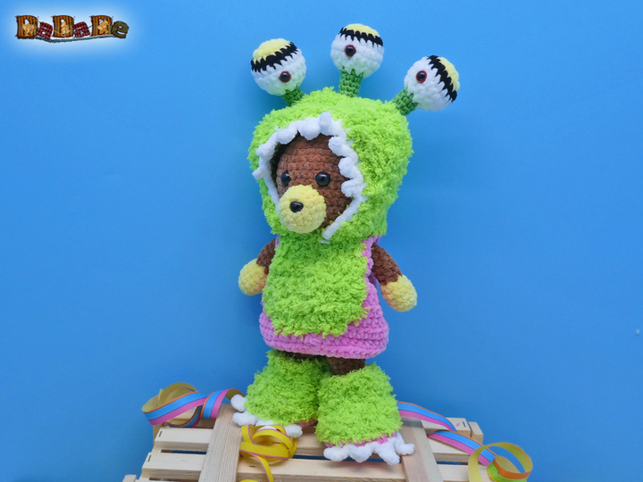 Sie kaufen hier die Häkelanleitung für diese Bärenbande, sowie das Alienkostüm,