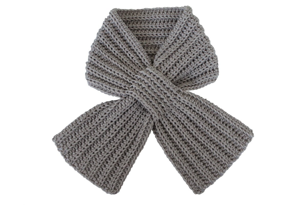 Der Häkelschal wird in einem Stück gehäkelt.