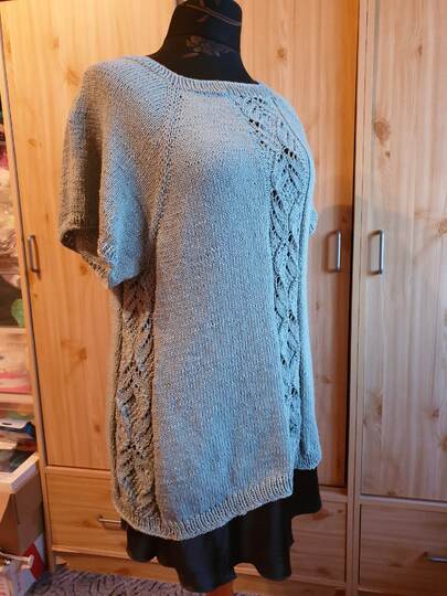Ideal für größere und große Größen. Du kannst Deine Weite und Länge individuell selber bestimmen, den Mustersatz einbauen, wie Du es magst und sowohl eine legere A-Linie als auch eine gerade Form stricken.