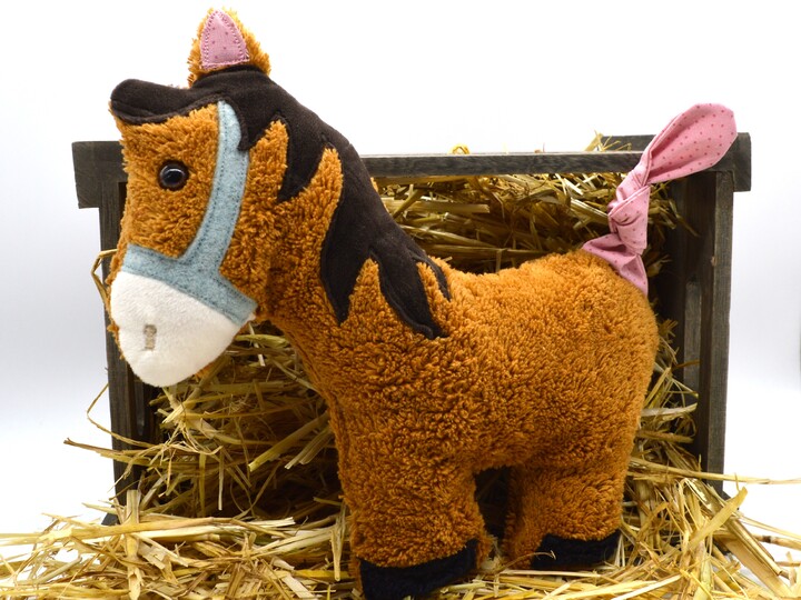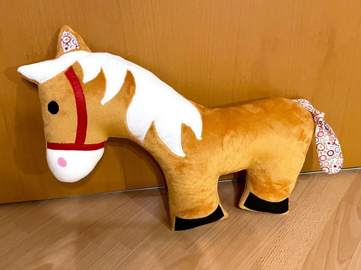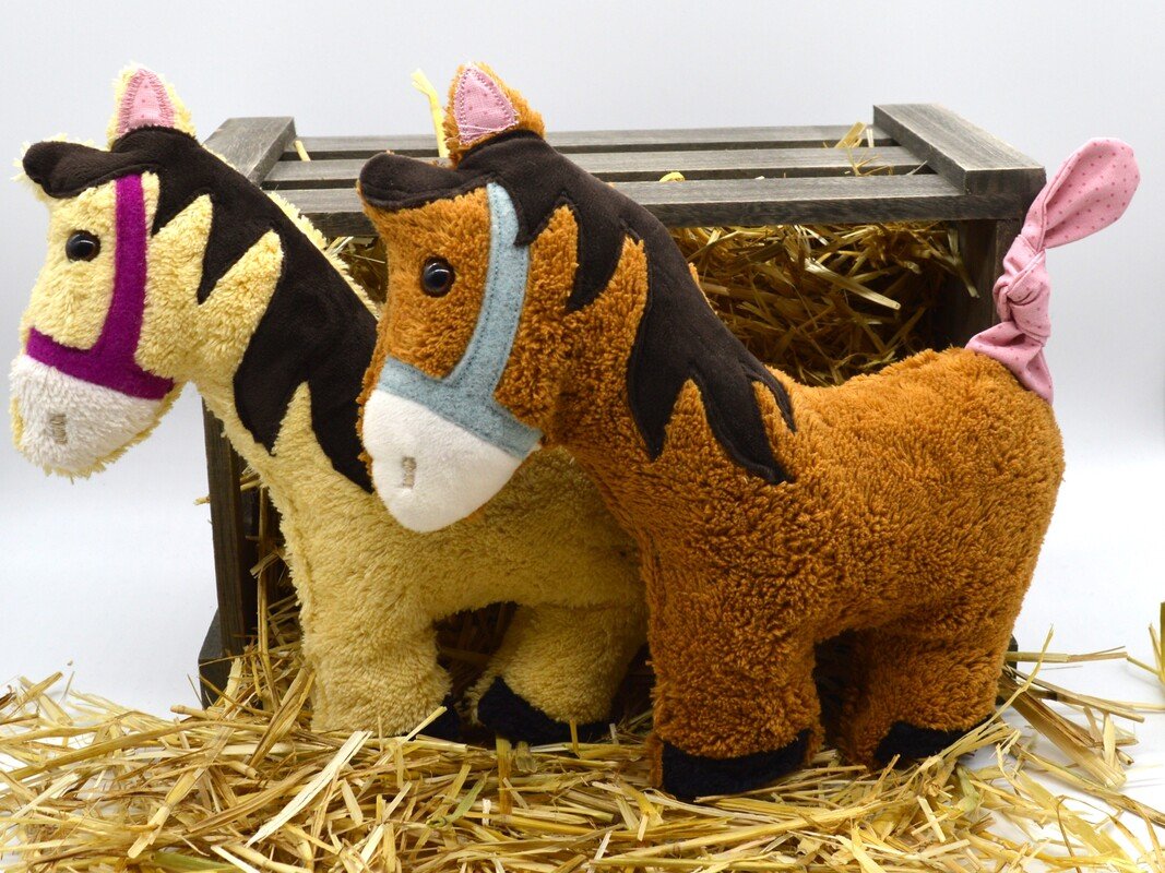 Mit diesem Schnittmuster ist das möglich. Ob kleiner oder großer Pferdefan, hier ist für jeden das passende Pferdchen dabei. Das kleine Pferd hat eine Größe von ca. 25x25cm im befüllten Zustand, das große Pferd etwa 50x45cm.