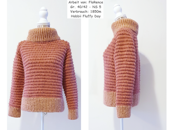 Beim vorgestellten Produkt handelt es sich nicht um den fertigen Pullover, sondern um eine Häkelanleitung zum Selbstanfertigen als PDF-Datei zum Runterladen. Solltest du Fragen zur Anleitung haben, schreibe mir gern eine Nachricht, dann bekommst du bei Problemen Hilfestellung.