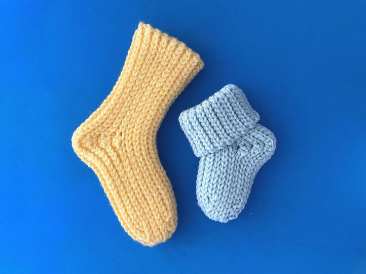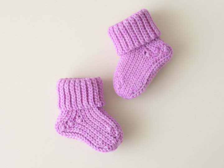 Das senkrechte Kettmaschenmuster im Stricklook und die langen Bündchen sehen bei Jungen und Mädchen gleichermaßen gut aus. Die Söckchen werden in einem Stück quer gehäkelt, wobei die Ferse durch Zunahmen geformt wird. Die flache Nahtlinie an der Innenseite des Söckchens trägt kaum auf. Durch Hinzufügen von Bindebändern (ebenfalls in der Anleitung beschrieben) werden aus den Häkelsöckchen im Handumdrehen Schühchen. Diese niedlichen Babysöckchen eignen sich ideal als Geschenk für Mutter und Baby!