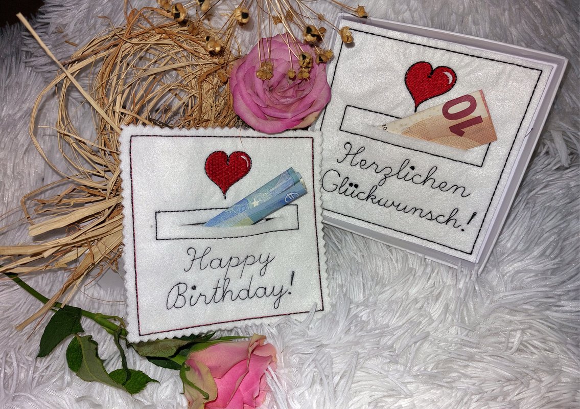 Stickdatei Gutschein, Geldgeschenk für den Rahmen 13 cm x 18.