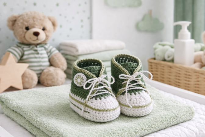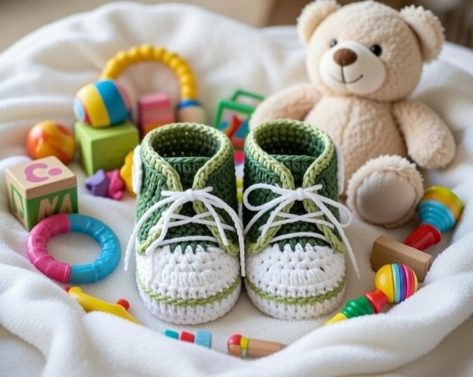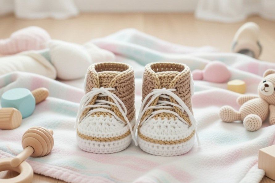 Mit dieser Anleitung kannst Du tolle,trendige Turnschuhe häkeln, für Deinen kleinen Liebling.