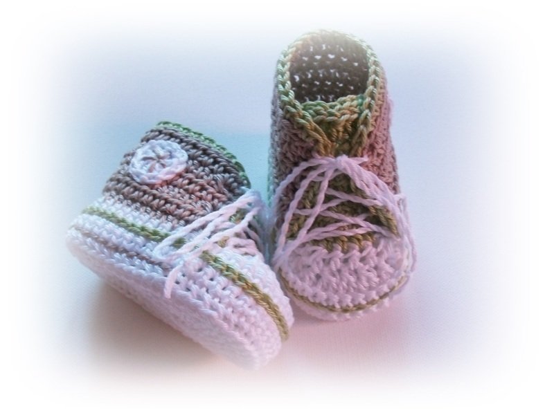 Mit dieser Anleitung kannst Du tolle,trendige Turnschuhe häkeln, für Deinen kleinen Liebling.