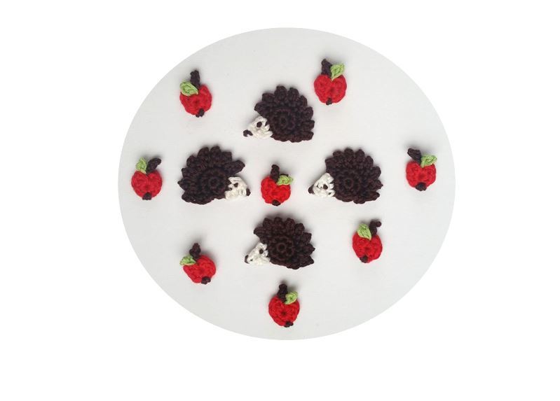Applikationen für Igel und Äpfel gibt es hier: https://www.crazypatterns.net/de/items/8833/igel-und-aepfel-gehaekelte-applikationen