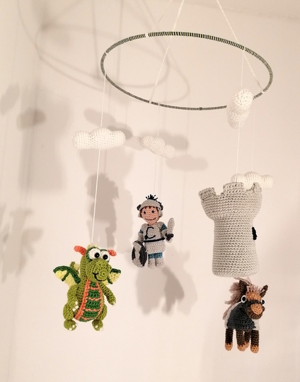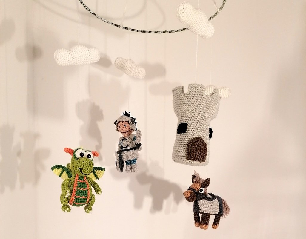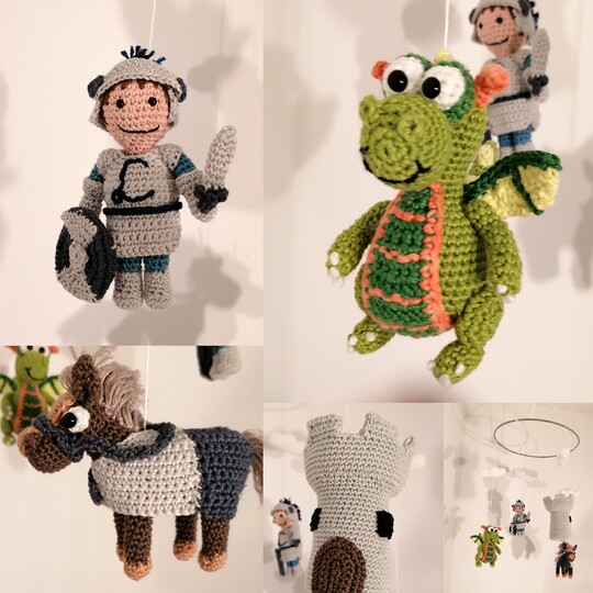 Mit dieser Anleitung kannst Du ein eigenes Ritter Mobile für einen glücklichen, kleinen Jungen häkeln.