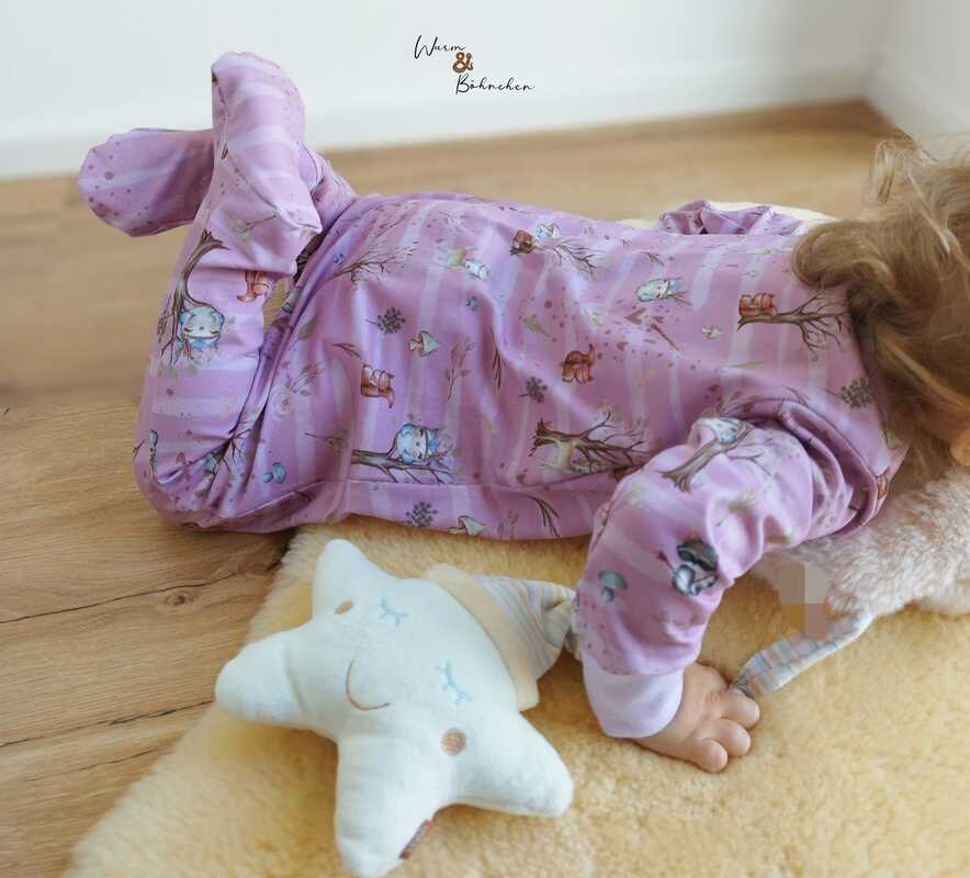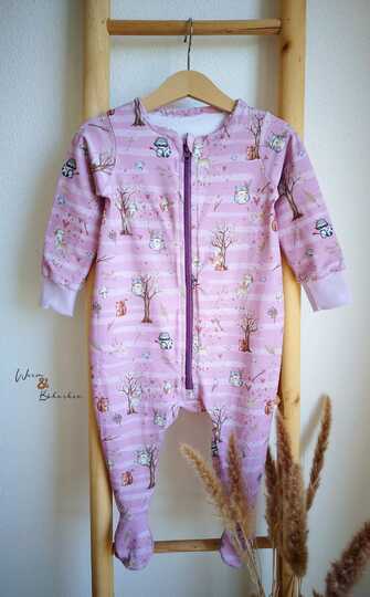 Mit dem neuen Schnittmuster kann Baby das ganz wunderbar tun! Ein niedlicher Schlafanzug für die Allerkleinsten mit Füßchen dran, damit das Mäuschen auch im Winter keine kalten Füße bekommt. Vorn wird er mit einem Reißverschluss geschlossen.