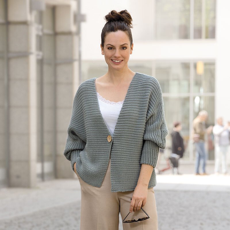Für diese Jacke werden 4 Einzelteile im Perlfangmuster quer gestrickt