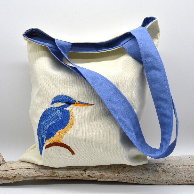 Der Eisvogel wird voll ausgestickt und ist in zwei Größen enthalten.