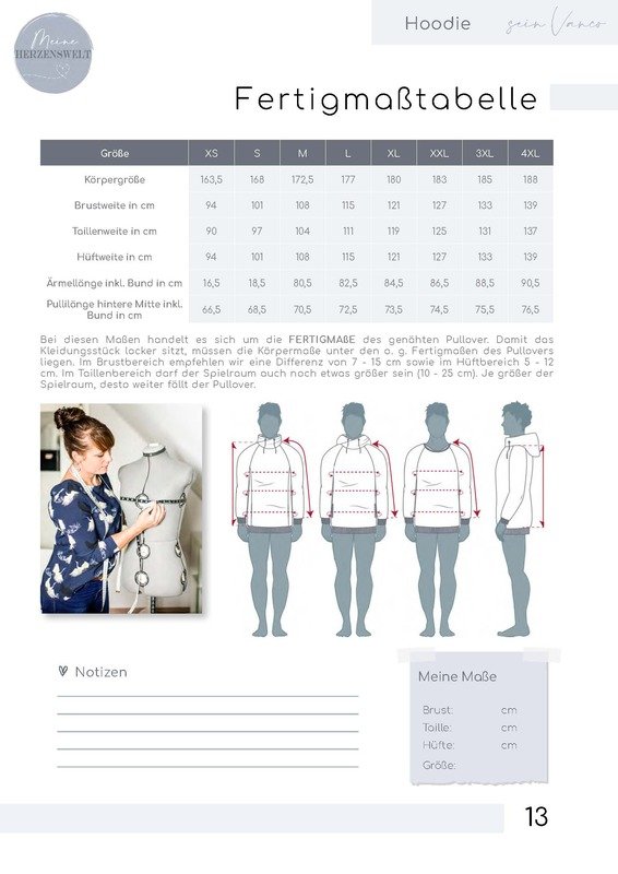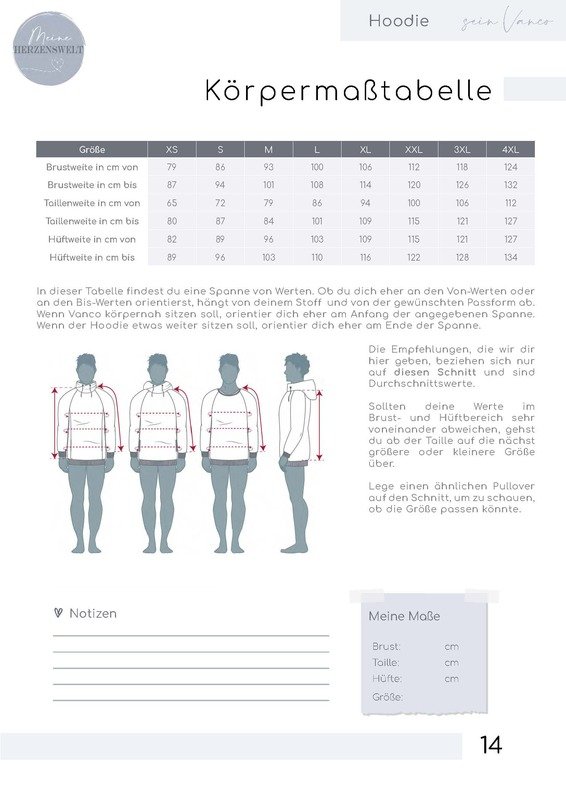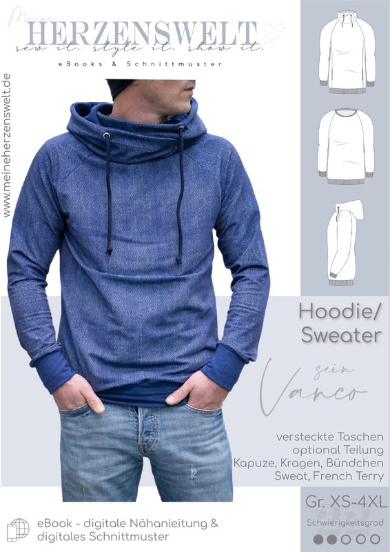 Dieses eBook sein Vanco beinhaltet ein Schnittmuster mit den Größen XS-4XL.