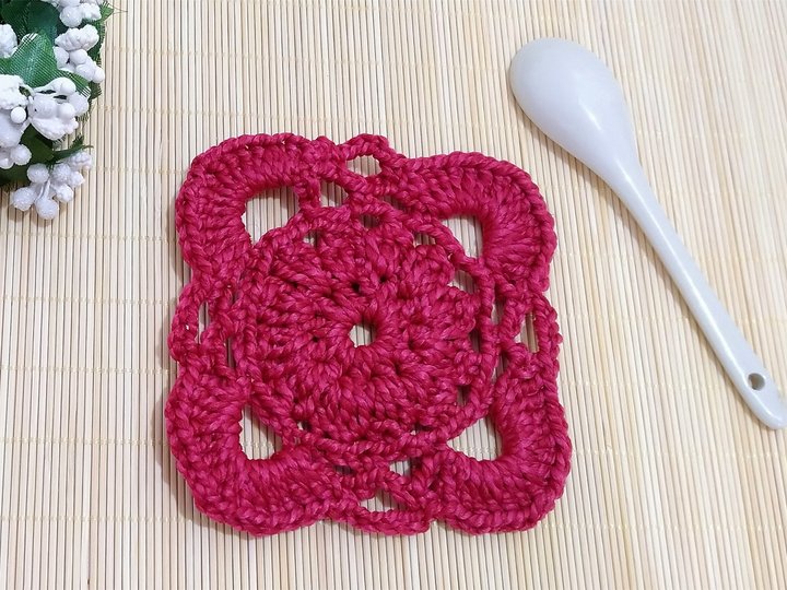 Diese Häkelanleitung für einen quadratischen Untersetzer enthält detaillierte Schritt-für-Schritt-Anleitungen mit Foto-Tutorials, Maschenzahlen und hilfreichen Erklärungen.