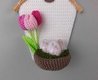 Dieser Dekohänger für Türen und Wände symbolisiert aufs Schönste den Frühling, das Sinnbild für das Erwachen der Natur und den Neubeginn, und sorgt mit den fröhlich-bunten Tulpen aus Wollresten gleich für gute Laune.