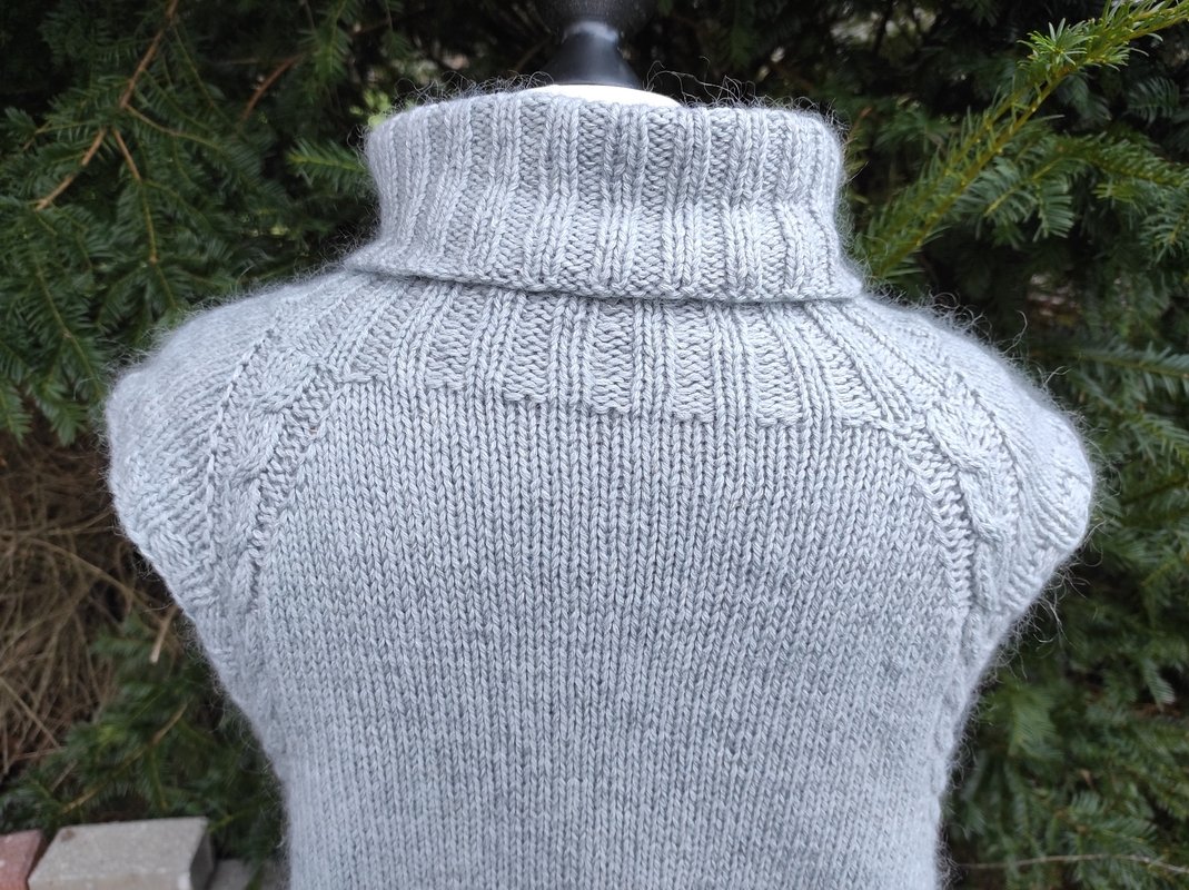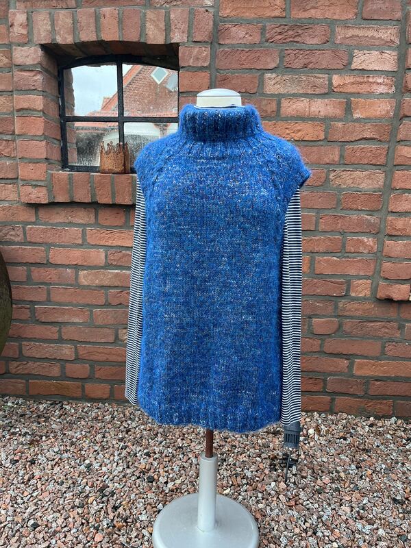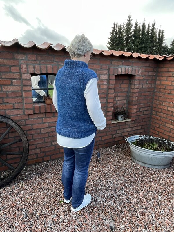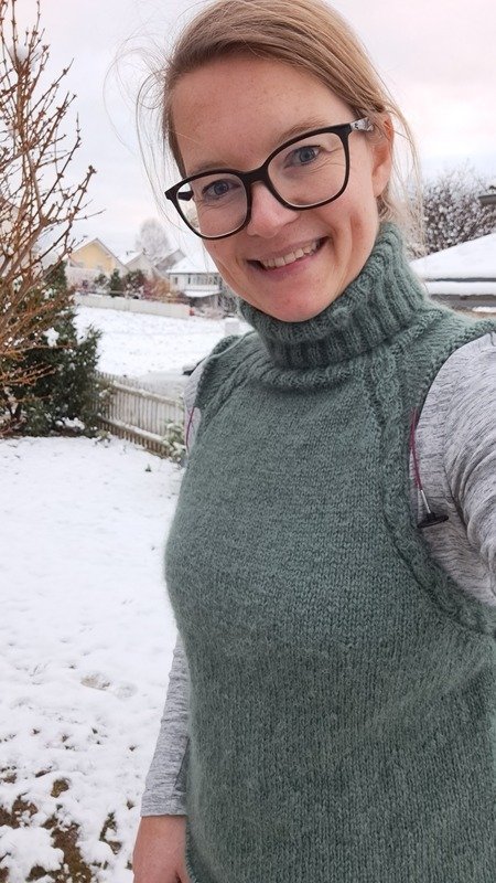 Der Pullunder ist im oberen Bereich passgenau designed. Der Rumpfbereich ist in der Anleitung gerade geschnitten und enthält eine Mehrweite von ca. 5cm. Wer sehr schmal ist und ein figurbetontes Strickstück haben möchte, der arbeitet im Anleitungsabschnitt "Rumpf" die Option B und strickt eine Taillierung.